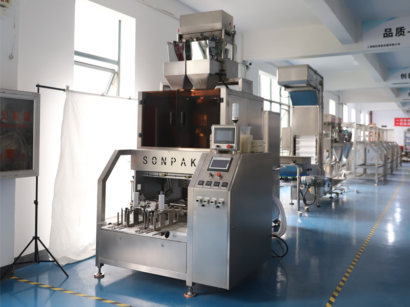 1、該真空包裝機(jī)將成品袋按順序放到指定袋庫(kù),該機(jī)自動(dòng)完成:取袋-開袋-裝料-整形-抽真空-封口-成品送出。