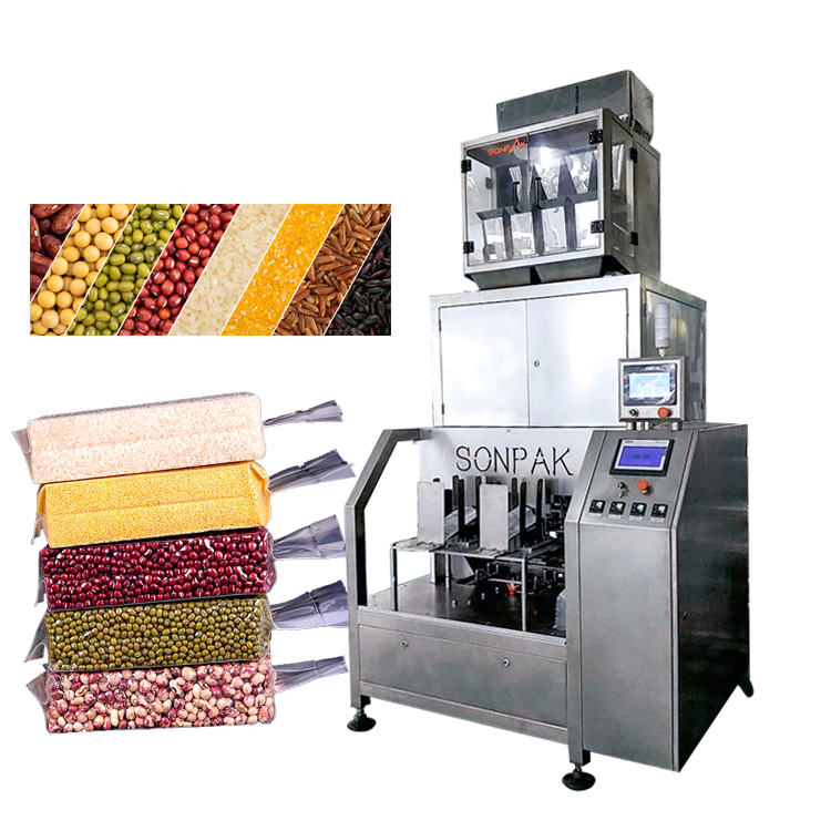 適用于五谷雜糧等形狀均勻、流動(dòng)性較好的顆粒物料的真空整形包裝。全自動(dòng)化,有效節(jié)約生產(chǎn)成本,能自動(dòng)取袋、送袋、開袋、上袋、充填、整形抽真空、封口、成品輸出。
